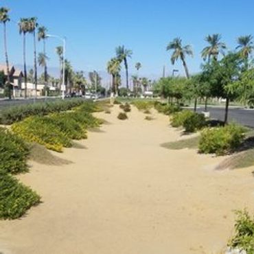 and trees; as well as the installation of irrigation, fencing, benches, solar lights, parking spaces, turf, curbs, and sidewalks.